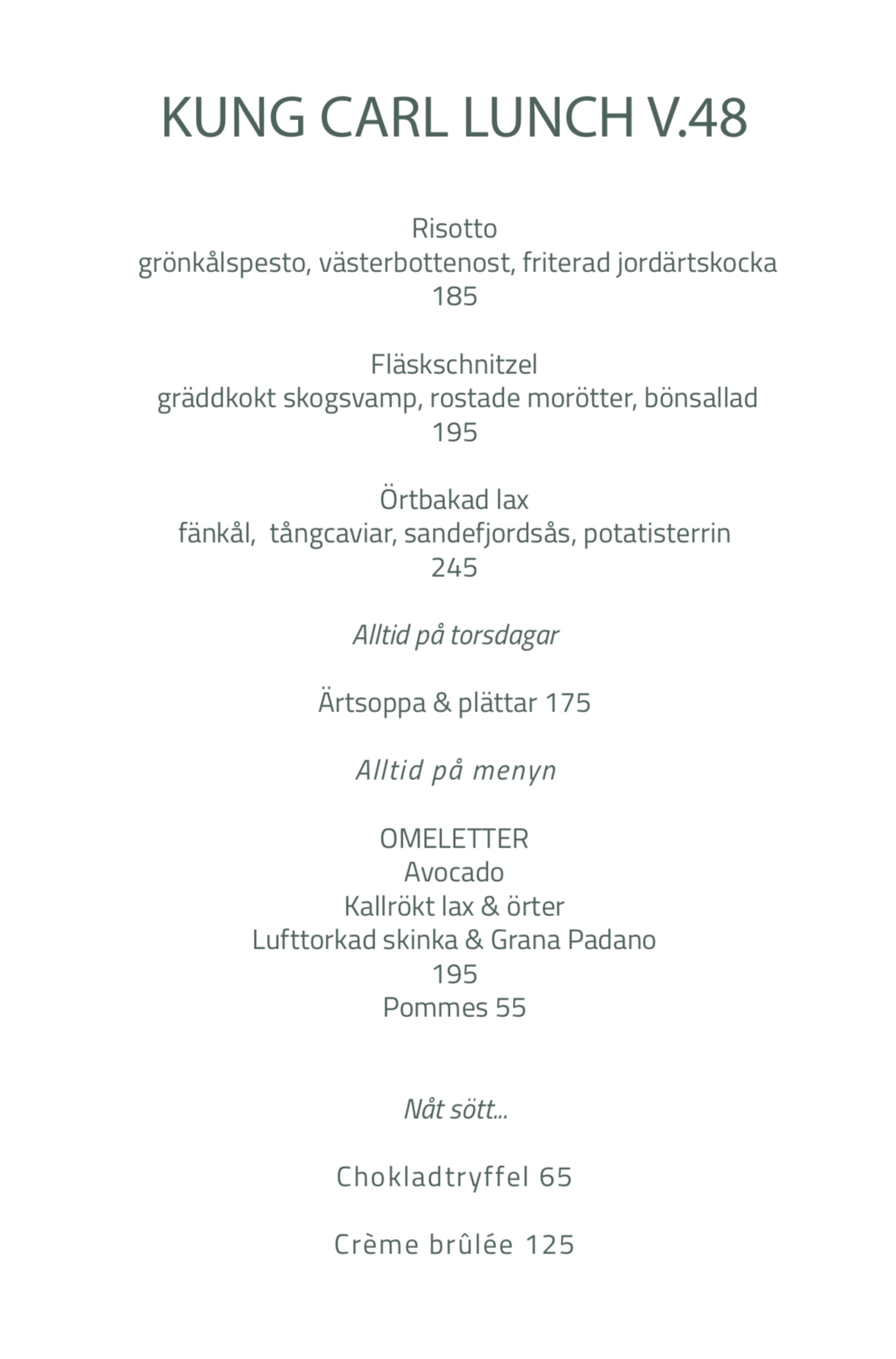 På lördagar och söndagar 11.30-15 serverar vi en a là carte brunch i Kung Carl Bar & Mat. Välkommen in i värmen!